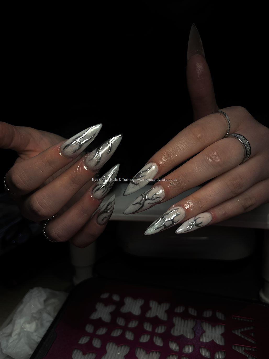 Acrylic Extensions With Silver Nail Art  #NailArt #Nails