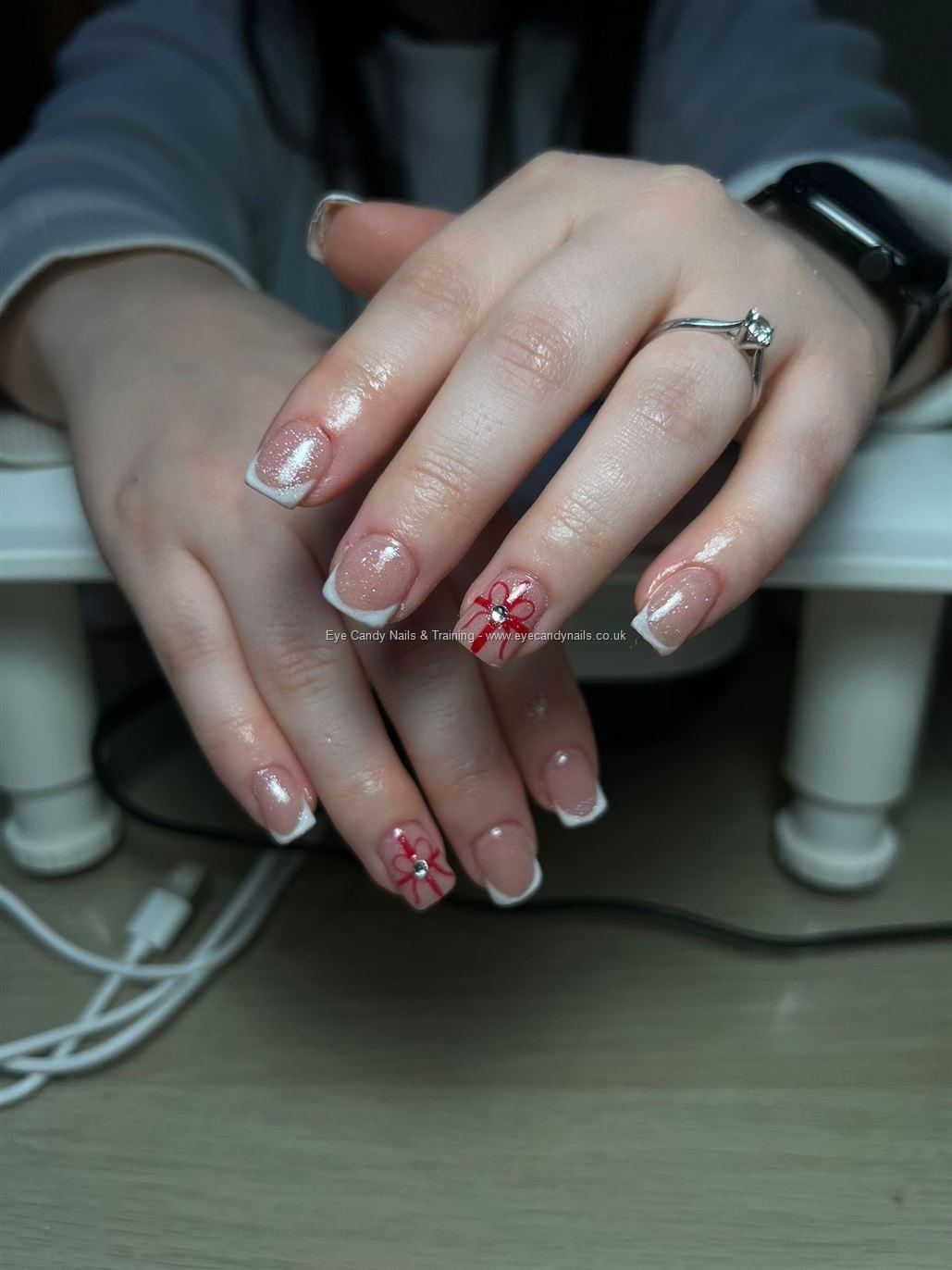 Silver Glittery Acrylics With A Red Bow #NailArt #Nails